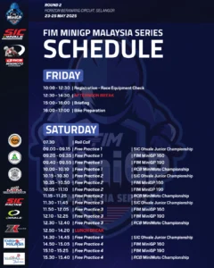 BERANANG, 22 Mei 2025 – Pusingan kedua Kejohanan FIM MiniGP Malaysia Series bakal berlangsung di Litar Horizon Beranang pada 24 hingga 25 Mei 2025 ini bakal menghangatkan suasana litar dengan aksi-aksi pelumba cilik dan bakat muda dengan penampilan aksi yang lebih bagi setiap kategori yang dipertandingkan.