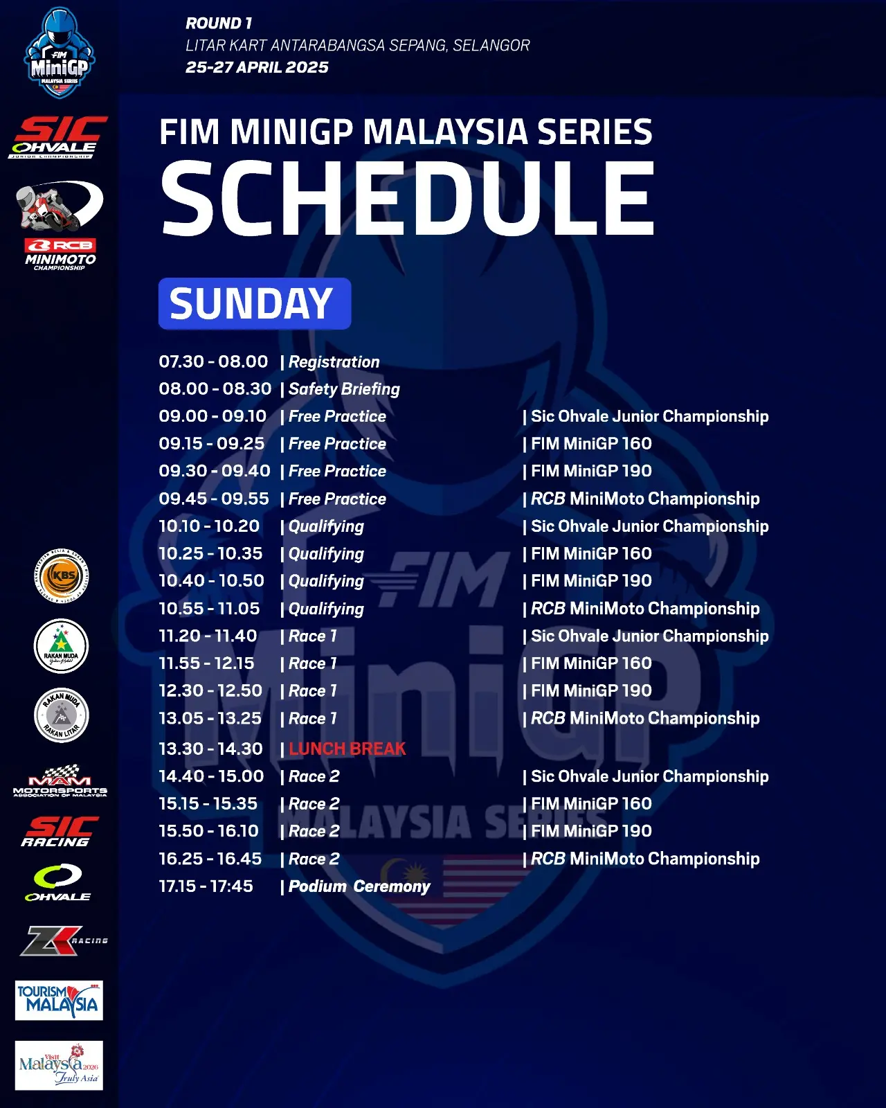 SEPANG, 23 April 2025 – Kejohanan perlumbaan motosikal akar umbi paling dinanti kini kembali! FIM MiniGP Malaysia 2025 akan membuka tirai pada 26 dan 27 April 2025 bertempat di Litar Kart Antarabangsa Sepang, Selangor dengan barisan pelumba muda berbakat tempatan dan antarabangsa bersedia untuk mencabar keupayaan masing-masing dalam pelbagai kategori.